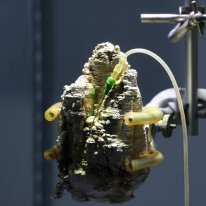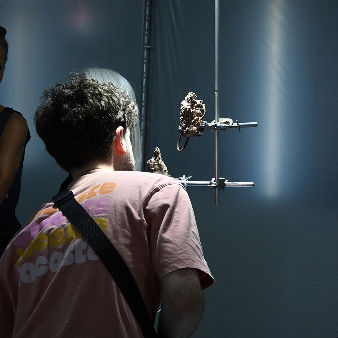 Une mission spéculative débute : un vaisseau artistique transportant une vie microscopique, des astronautes microbiens, se prépare au lancement. Leur mission : atteindre l’inconnu et initier une « poignée de main moléculaire » avec leurs frères extraterrestres. Inspiré par la science-fiction et ancré dans l’astrobiologie, BioQuantum Record imagine comment la vie pourrait accueillir son reflet – un autre extraterrestre – à travers les subtiles asymétries propres à tout être vivant. Et si, au lieu d’envoyer un message dans l’espace, nous envoyions la vie elle-même ? L’installation réunit micro-organismes, prototypes sculpturaux et traces matérielles, ouvrant un espace poreux entre l’art et la science, le soi et l’autre, la Terre.